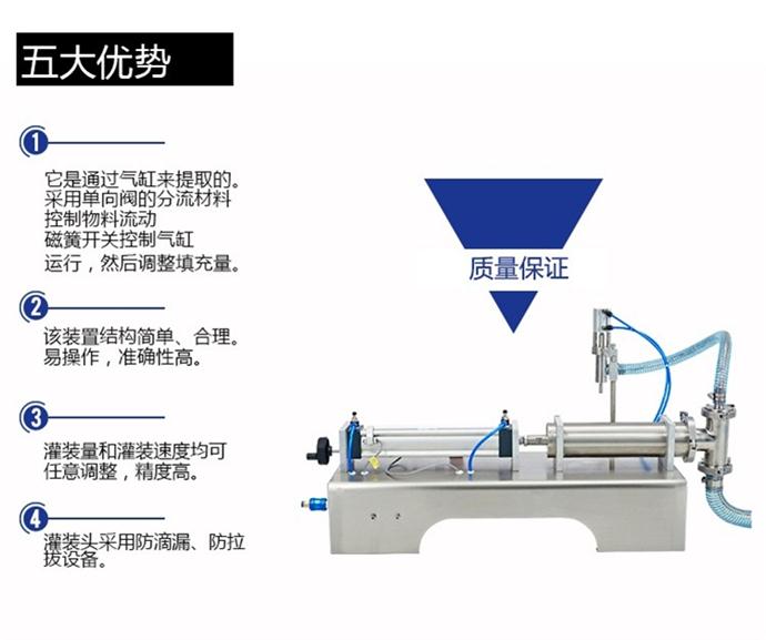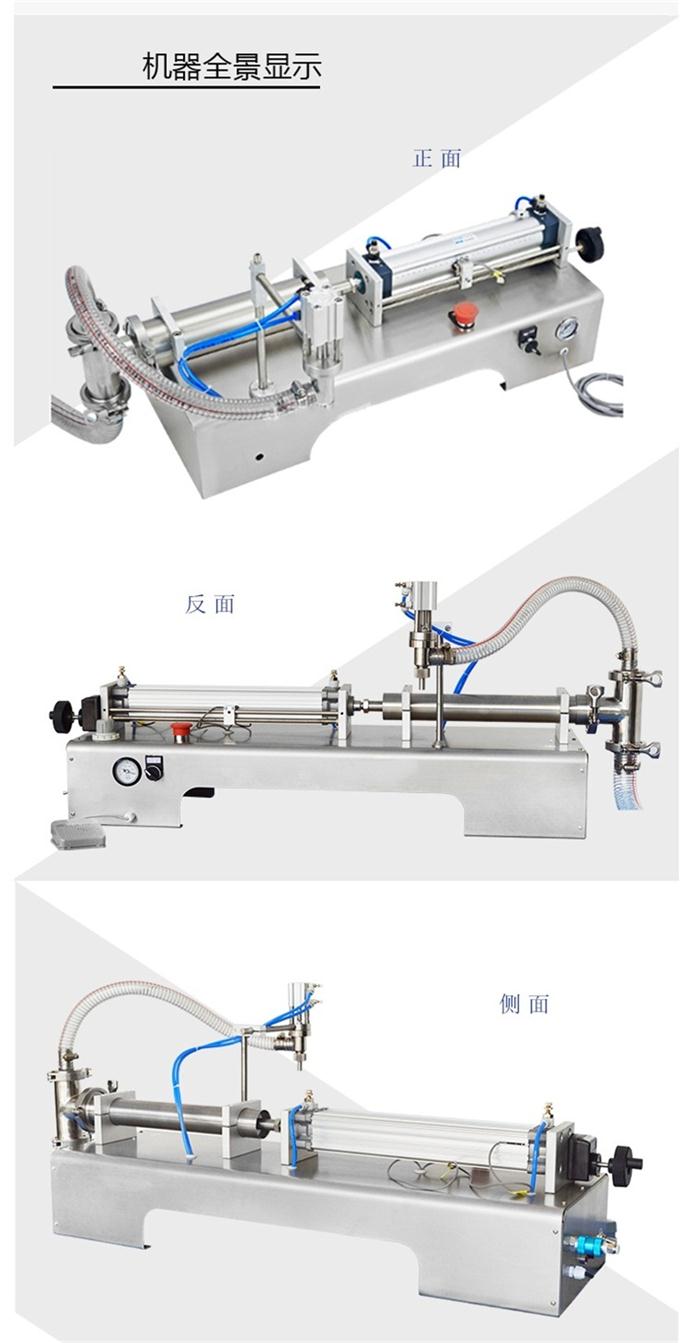 單頭活塞式液體灌裝機DY ( 60/12/250/550/1000/2500/5000 )系列灌裝機半自動活塞臥式液體灌裝機 一工作原理: DY 系列灌裝機為半自動活塞式灌裝機,通過氣缸帶動一個活塞